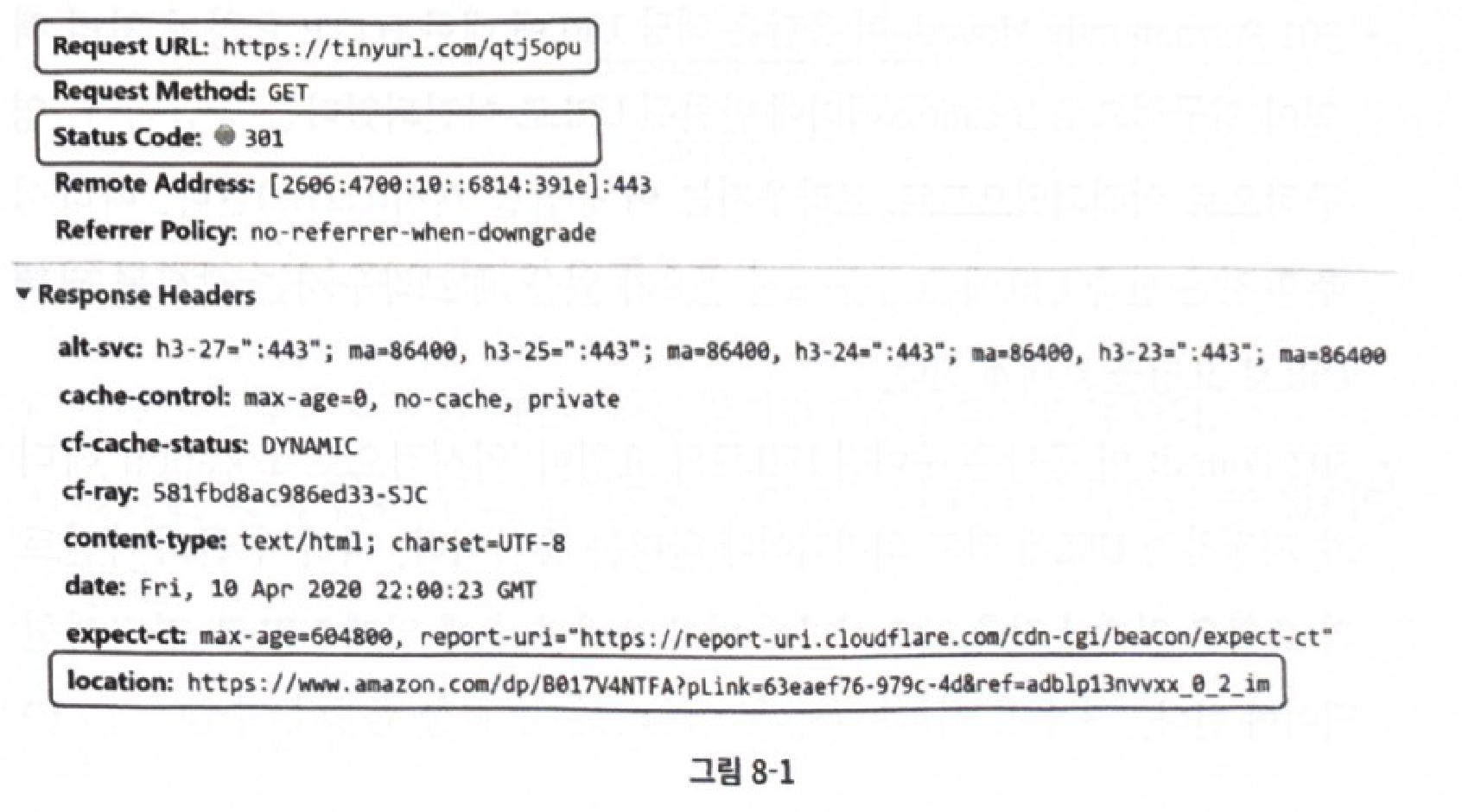 p.142 “302 Found…’일시적으로’ Location 헤더 가 지정하는 URL에 의해 처리되어야 한다는 응답이다…언제나 단축 URL 서버에 먼저 보내진 후에 원래 URL로 리디렉션 되어야 한다.”