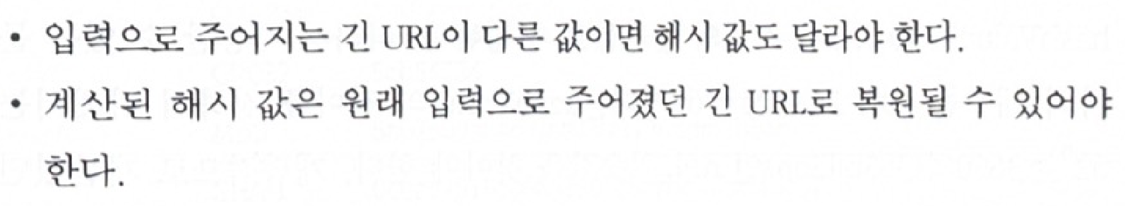 p.145 “해시 함수 구현에 쓰일 기술로는 두 가지 방법을 살펴보겠다. 하나는 ‘해시 후 충돌 해소’ 방법이고, 다른 하나는 ‘base-62 변환’ 법이다.”