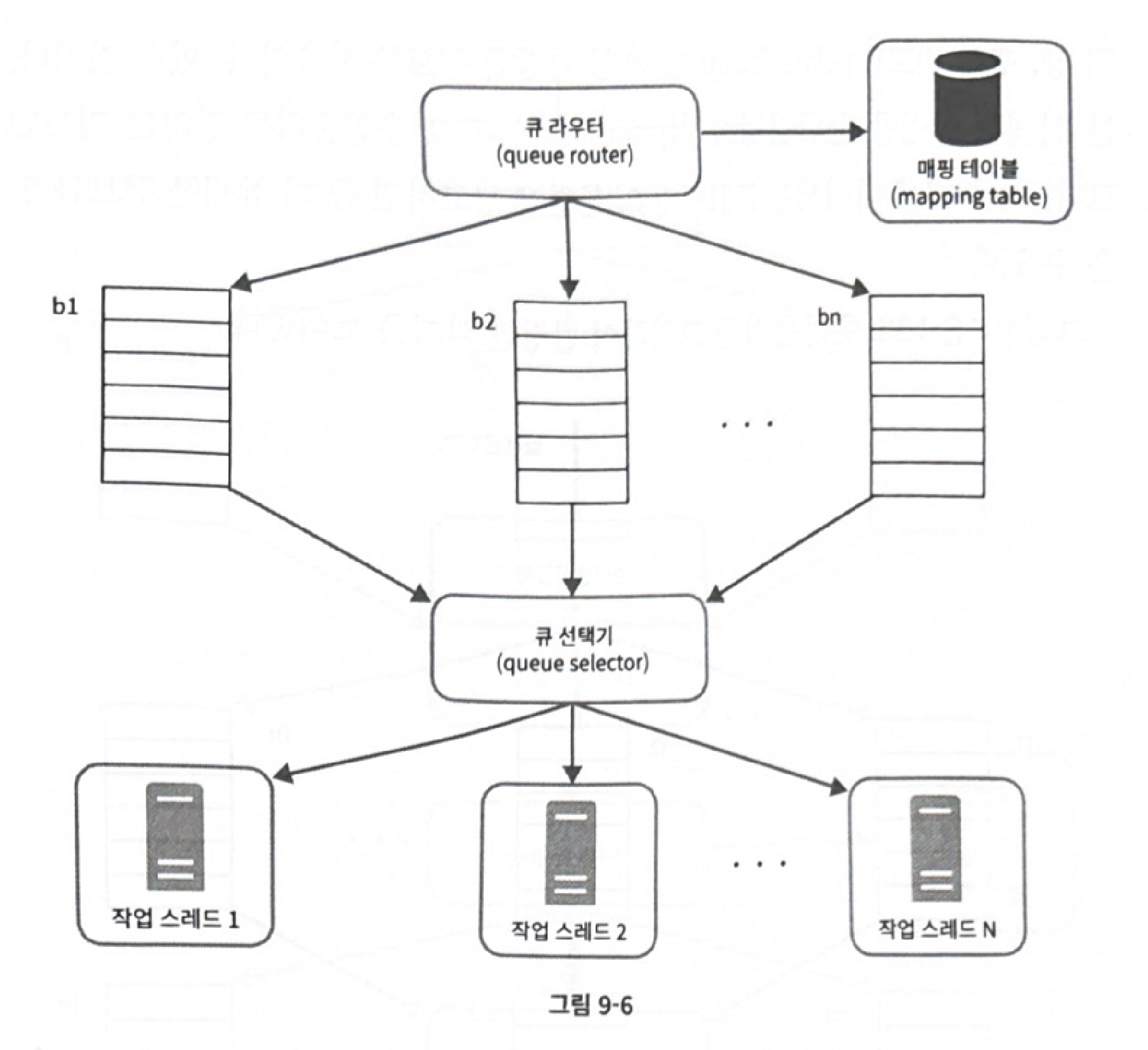 p.163 “매핑 테이블(mapping table): 호스트 이름과 큐 사이의 관계를 보관하는 테이블. 표 9-1과 같은 형태”