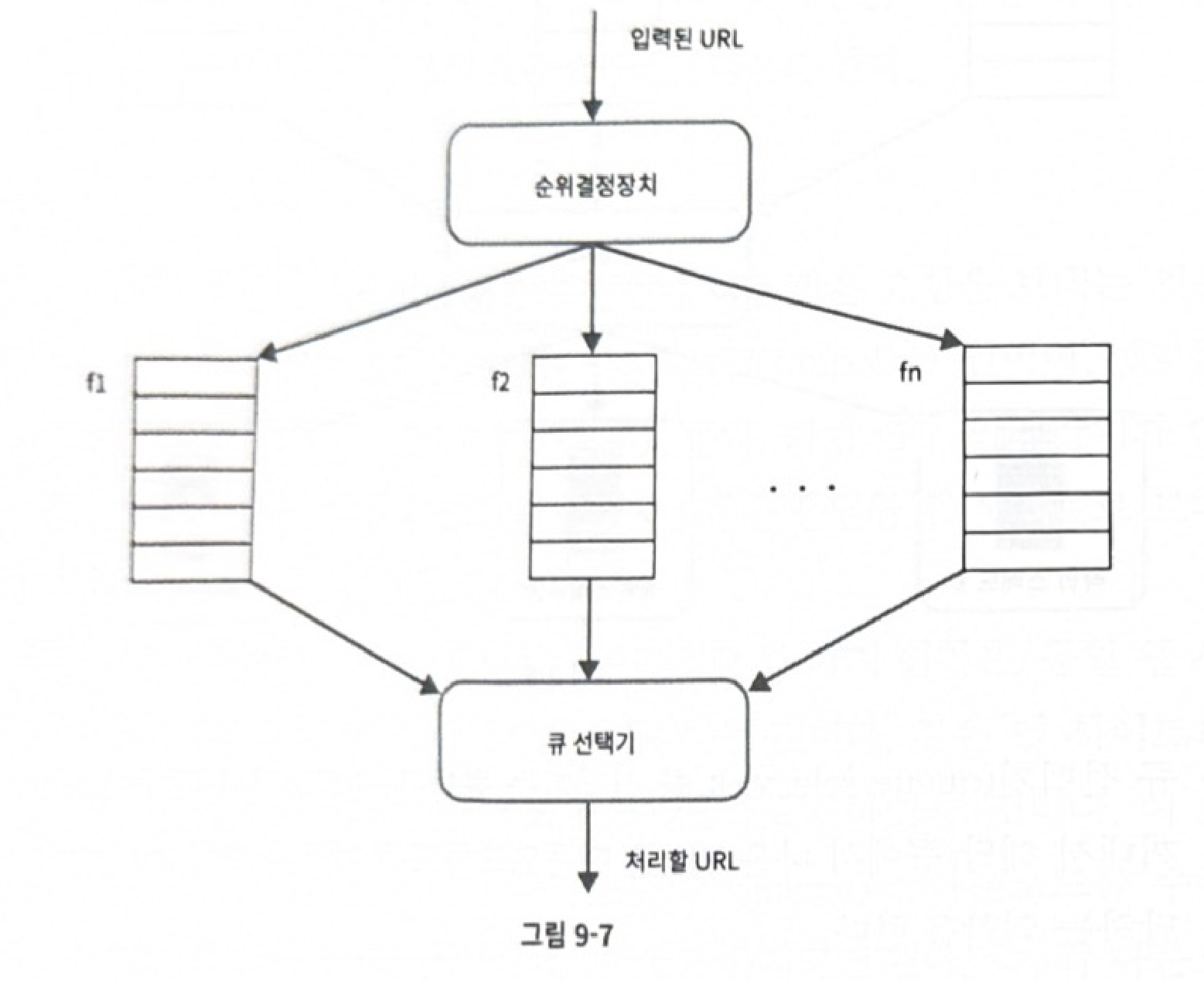 p.165 “큐 선택기: 임의 큐에서 처리할 URL을 꺼내는 역할을 담당한다. 순위가 높 은 큐에서 더 자주 꺼내도록 프로그램되어 있다.”