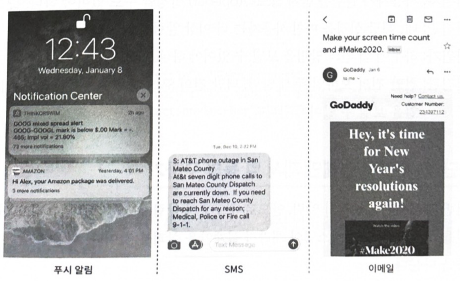p.190 “넷플릭 스 신작 영화 출시 정보, 신규 상품에 대한 할인 쿠폰 이메일, 온라인 쇼핑 결제 확정 메시지 같은 것이 전부 이 알림 기능을 통해 제공되는 것”